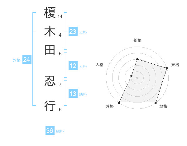 榎木田 忍行さんを姓名の画数から五運を鑑定