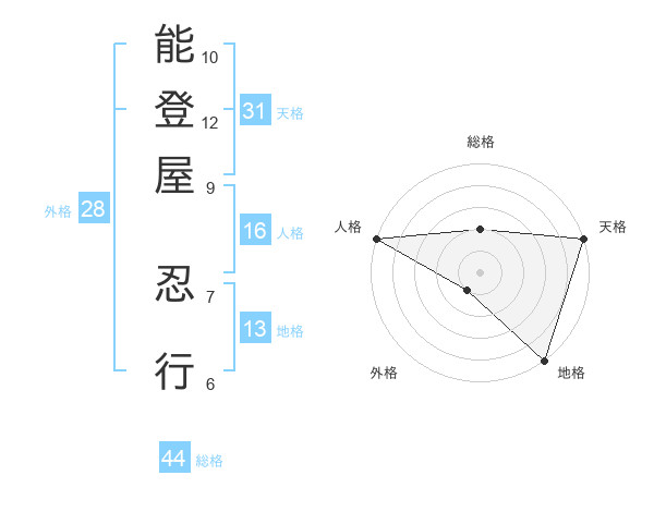 能登屋 忍行さんを姓名の画数から五運を鑑定