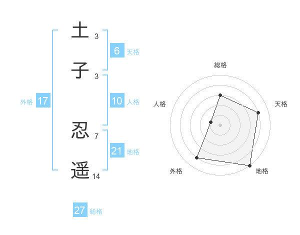 土子 忍遥さんの総格は27画の3点!