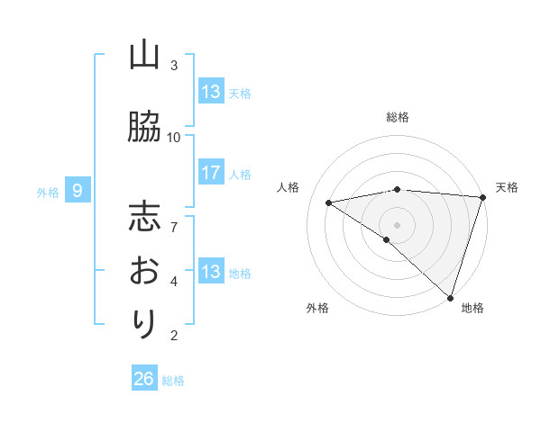 山脇 志おりさんの天格は13画の5点!