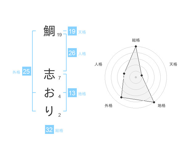 鯛 志おりさんを姓名の画数から五運を鑑定