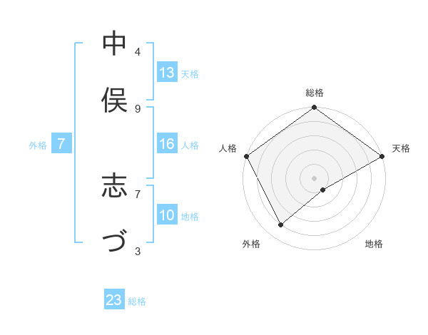 中俣 志づさんの総格は23画の5点!