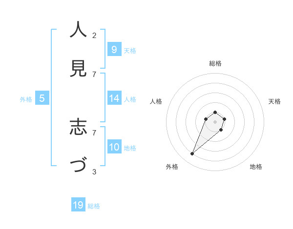 人見 志づさんの外格は5画の4点!