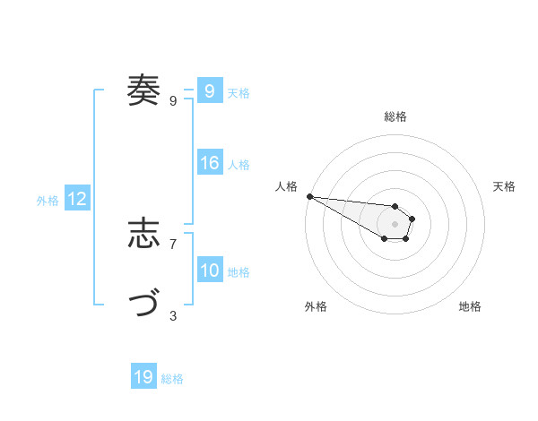 奏 志づさんの外格は12画の1点!
