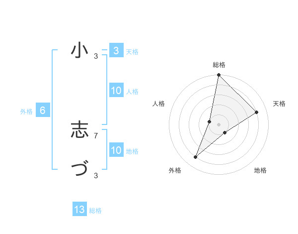 小 志づさんの総格は13画の5点!
