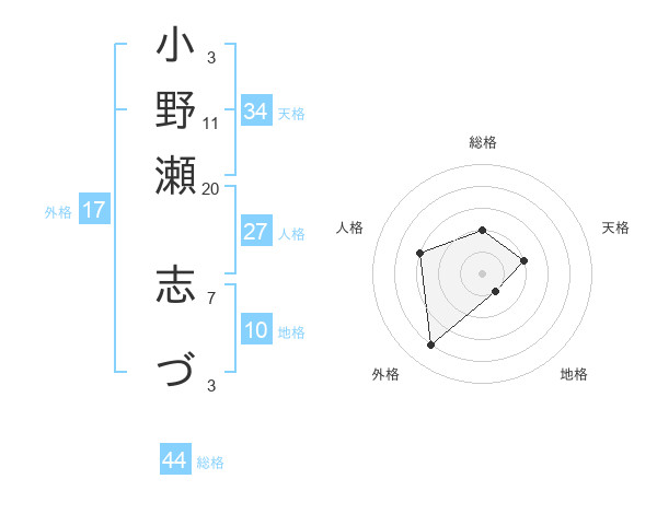 小野瀬 志づさんの総格は44画の2点