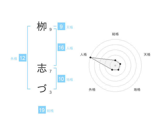 栁 志づさんの総格は19画の1点!