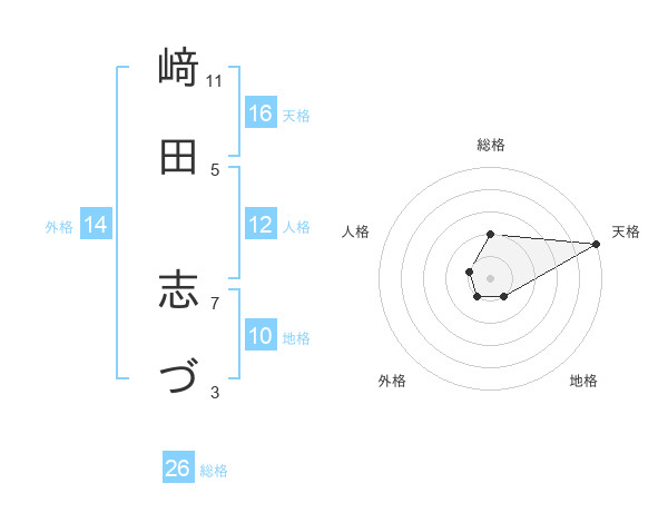 﨑田 志づさんを姓名の画数から五運を鑑定