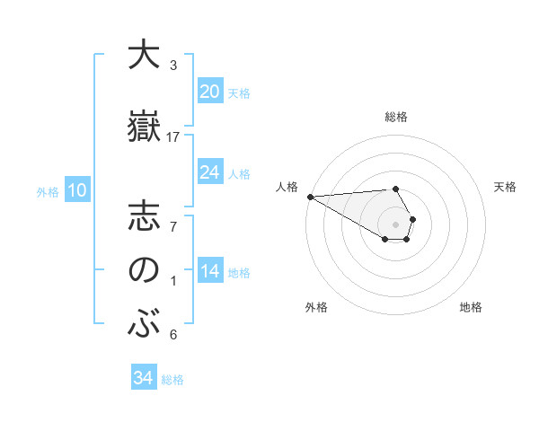 大嶽 志のぶさんを姓名の画数から五運を鑑定