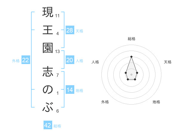 現王園 志のぶさんを姓名の画数から五運を鑑定