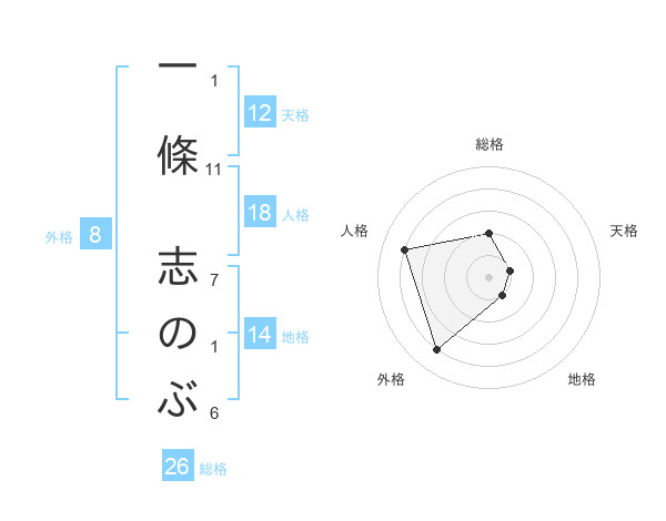 一條 志のぶさんの総格は26画の2点!