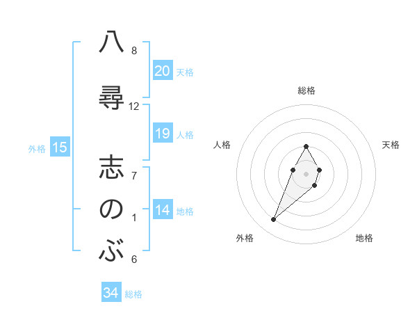 八尋 志のぶさんを姓名の画数から五運を鑑定