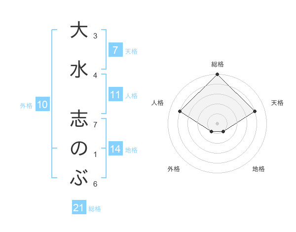 大水 志のぶさんを姓名の画数から五運を鑑定