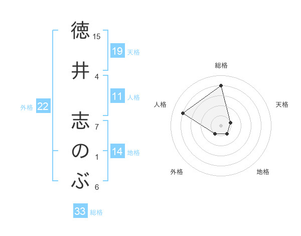 徳井 志のぶさんの総格は33画の4点!