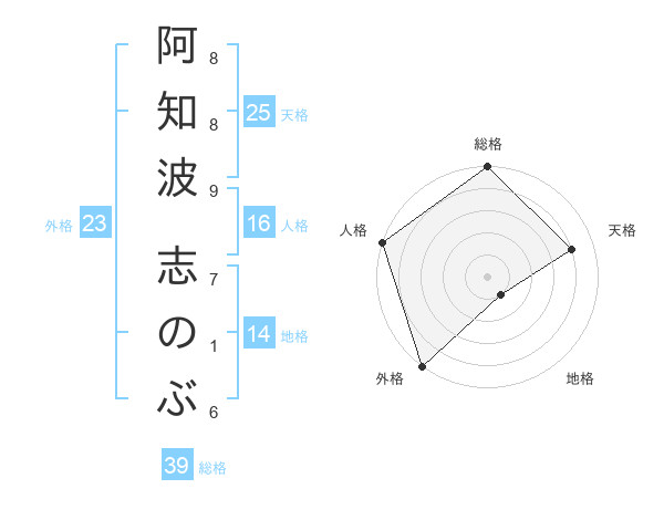 阿知波 志のぶさんを姓名の画数から五運を鑑定