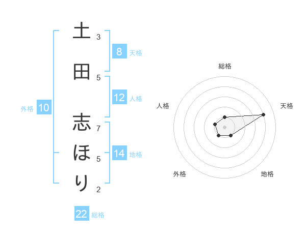 土田 志ほりさんを姓名の画数から五運を鑑定