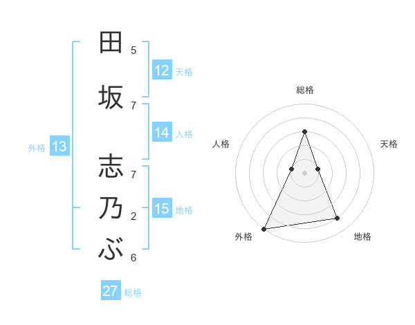 田坂 志乃ぶさんを姓名の画数から五運を鑑定