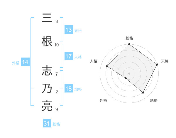 三根 志乃亮さんを姓名の画数から五運を鑑定