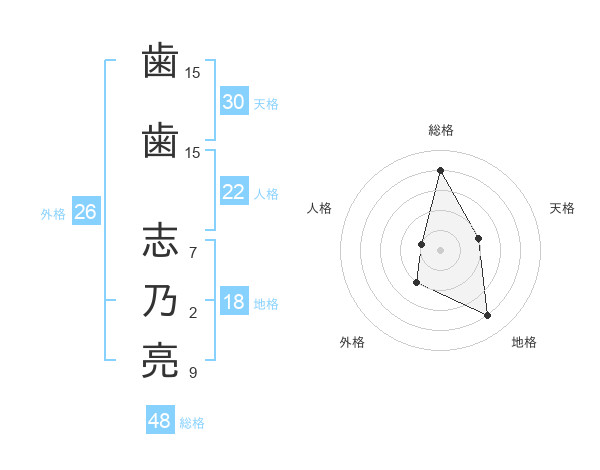 歯歯 志乃亮さんを姓名の画数から五運を鑑定