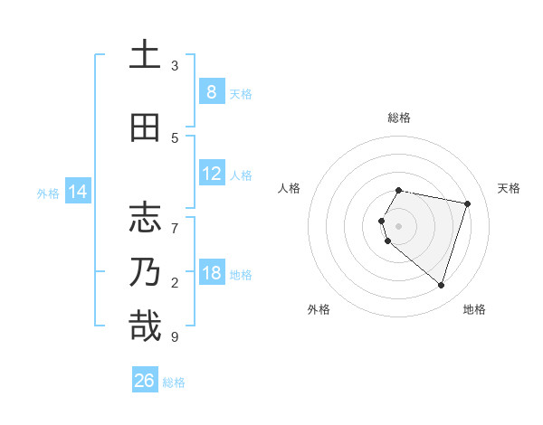 土田 志乃哉さんを姓名の画数から五運を鑑定