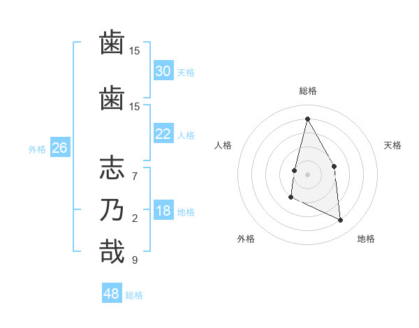 歯歯 志乃哉さんの天格は30画の2点!