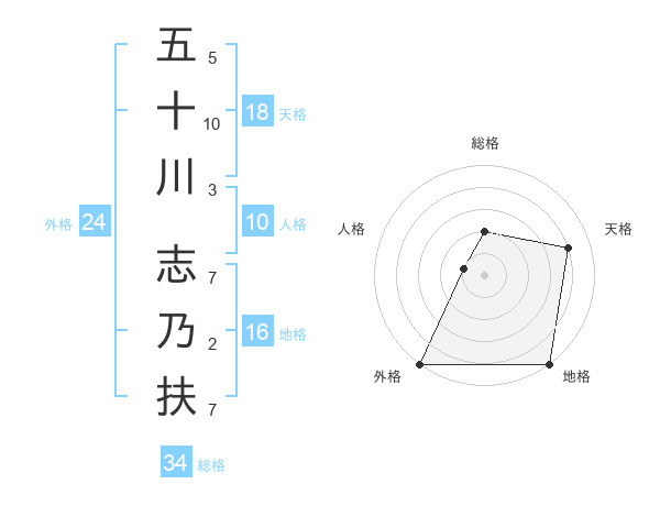 五十川 志乃扶さんを姓名の画数から五運を鑑定