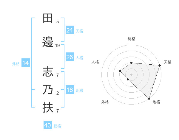 田邊 志乃扶さんを姓名の画数から五運を鑑定