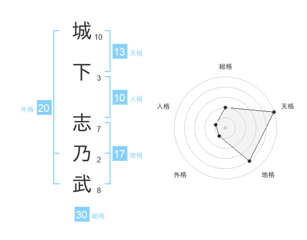 城下 志乃武さんを姓名の画数から五運を鑑定