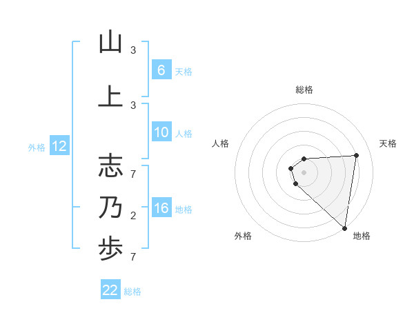 山上 志乃歩さんの総格は22画の1点!