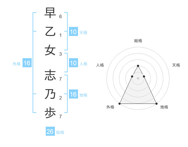 早乙女 志乃歩さんの総格は26画の2点