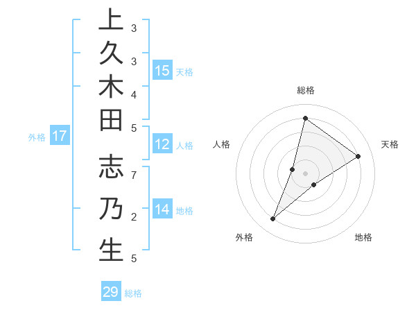上久木田 志乃生さんを姓名の画数から五運を鑑定