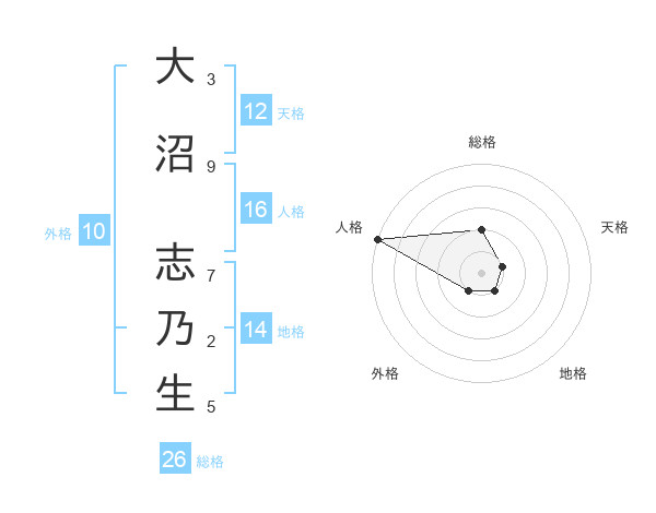大沼 志乃生さんを姓名の画数から五運を鑑定