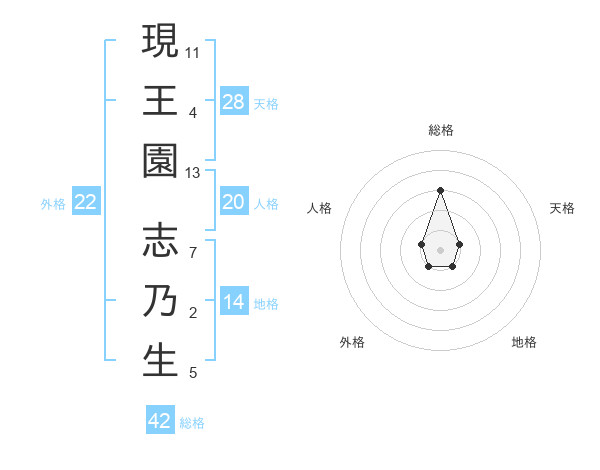現王園 志乃生さんの総格は42画の3点!