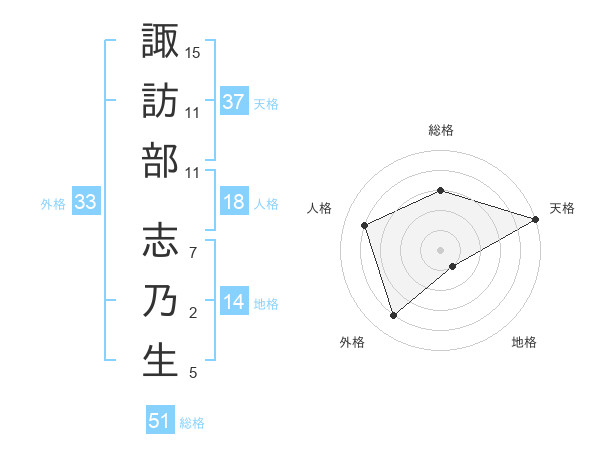 諏訪部 志乃生さんの総格は51画の3点!