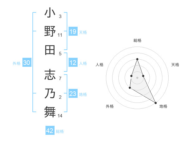 小野田 志乃舞さんを姓名の画数から五運を鑑定