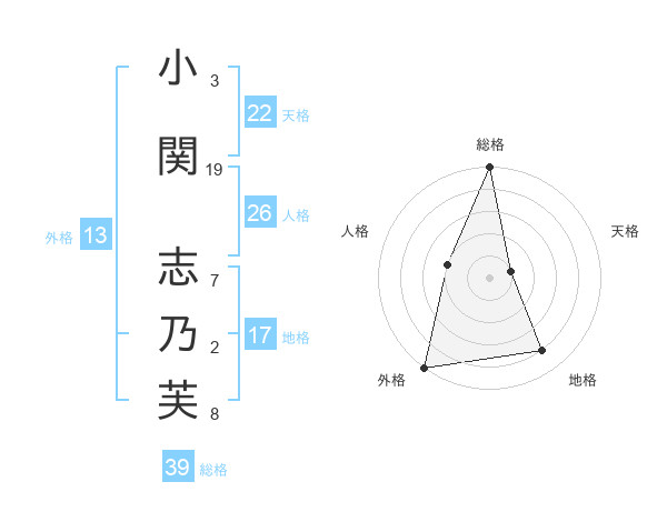 小関 志乃芙さんを姓名の画数から五運を鑑定