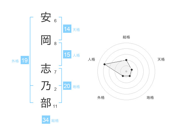 安岡 志乃部さんを姓名の画数から五運を鑑定
