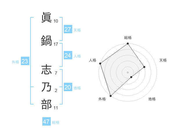 眞鍋 志乃部さんの外格は23画の5点!