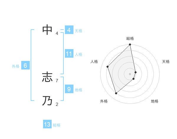 中 志乃さんの総格は13画の5点!