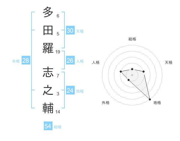 多田羅 志之輔さんの総格は54画の1点!