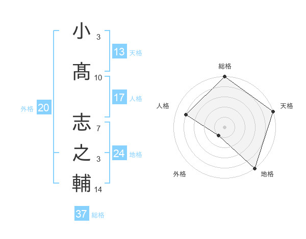 小髙 志之輔さんを姓名の画数から五運を鑑定