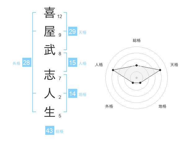 喜屋武 志人生さんを姓名の画数から五運を鑑定