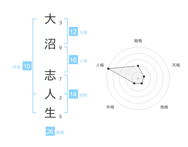 大沼 志人生さんを姓名の画数から五運を鑑定