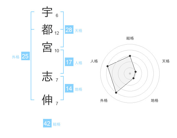宇都宮 志伸さんの総格は42画の3点!