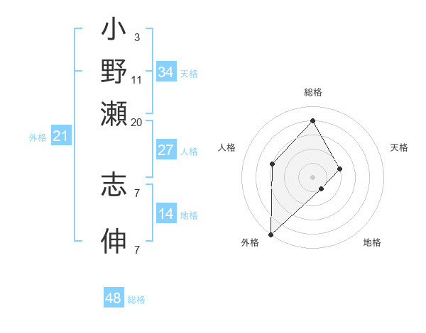 小野瀬 志伸さんを姓名の画数から五運を鑑定