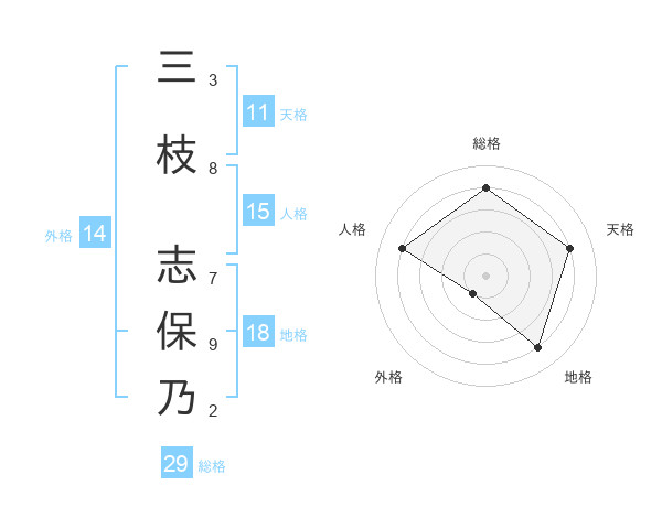 三枝 志保乃さんを姓名の画数から五運を鑑定