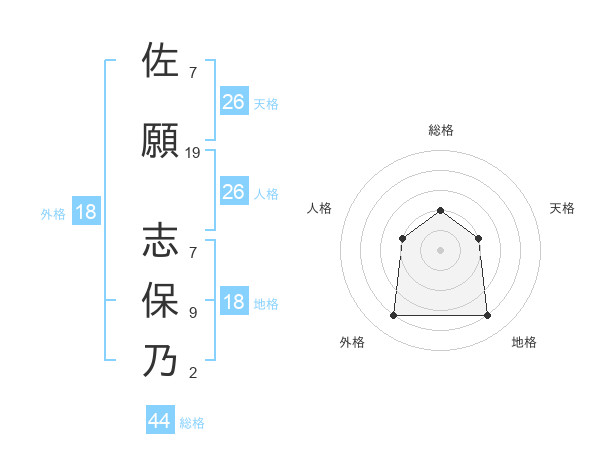 佐願 志保乃さんを姓名の画数から五運を鑑定