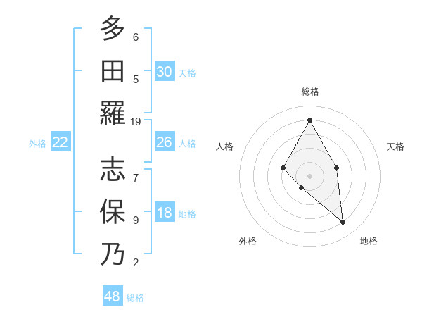多田羅 志保乃さんを姓名の画数から五運を鑑定
