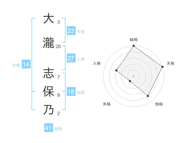 大瀧 志保乃さんを姓名の画数から五運を鑑定