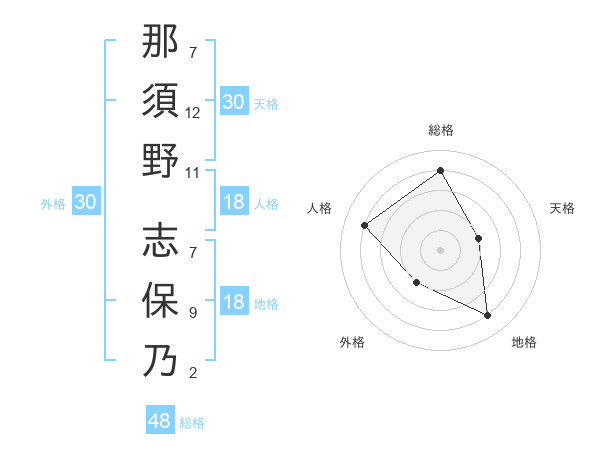 那須野 志保乃さんを姓名の画数から五運を鑑定